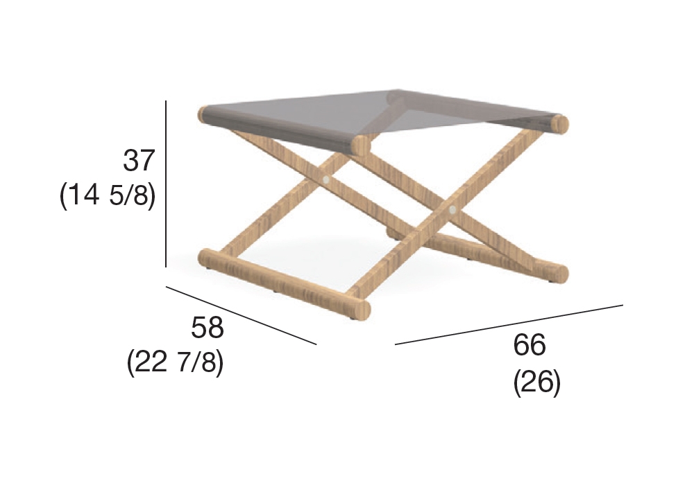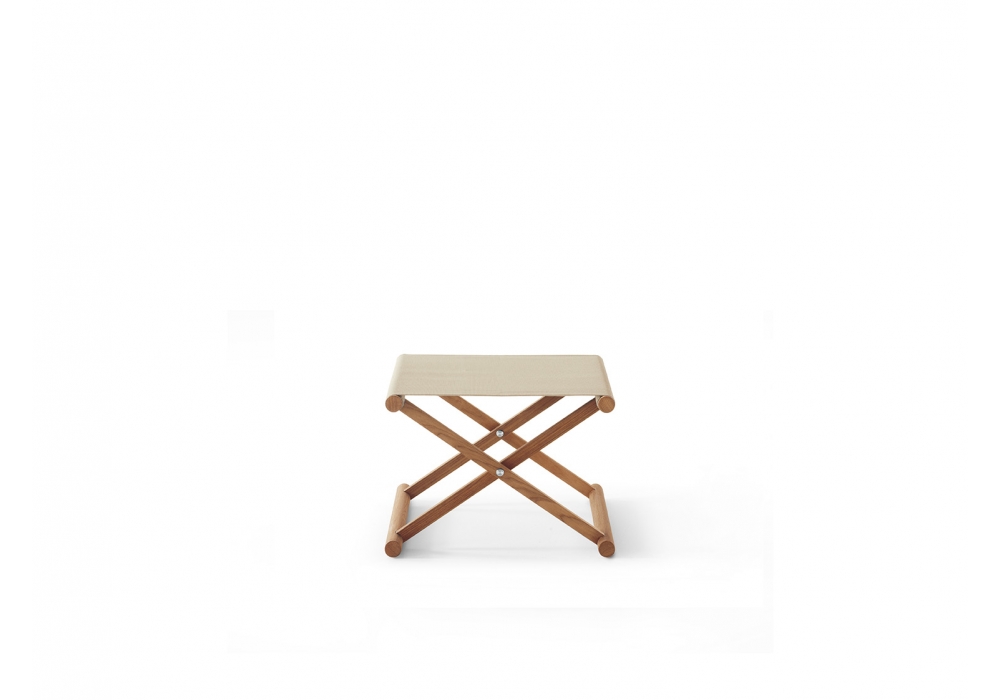 Orson is an outdoor stool designed by Gordon Guillaumier for Roda. Thanks to its convenient folding system, which allows it to remain standing on its own, Orson is presented as an extremely convenient and practical collection. The new and innovative line of this new collection reworks the image of one of the most famous outdoor chairs, giving it added elegance and volume thanks to the structural fabric - Canatex - providing glimpses of the solid teak structure. The stool is enhanced by electropolished grade 304 stainless steel details.