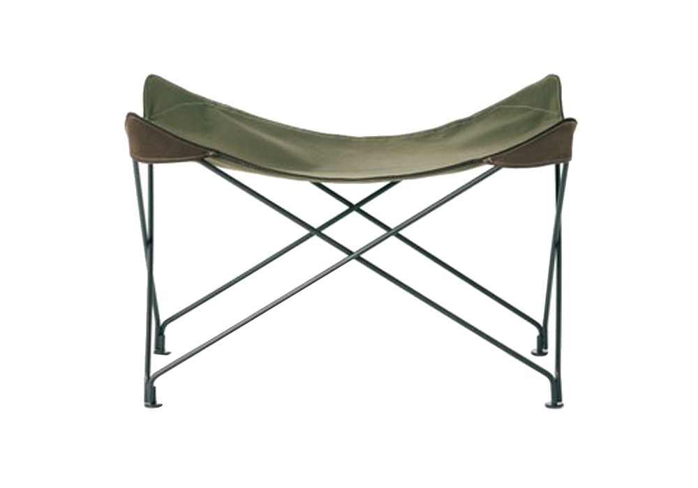 Lawrence is an outdoor stool designed by Rodolfo Dordoni for Roda. Essential design for Lawrence: a cotton impermeable canvas with leather inserts, clothes the vertexes of four structural triangles in metal wire. Available in sand, green or blue canvas, it is perfect both for indoor and outdoor spaces.