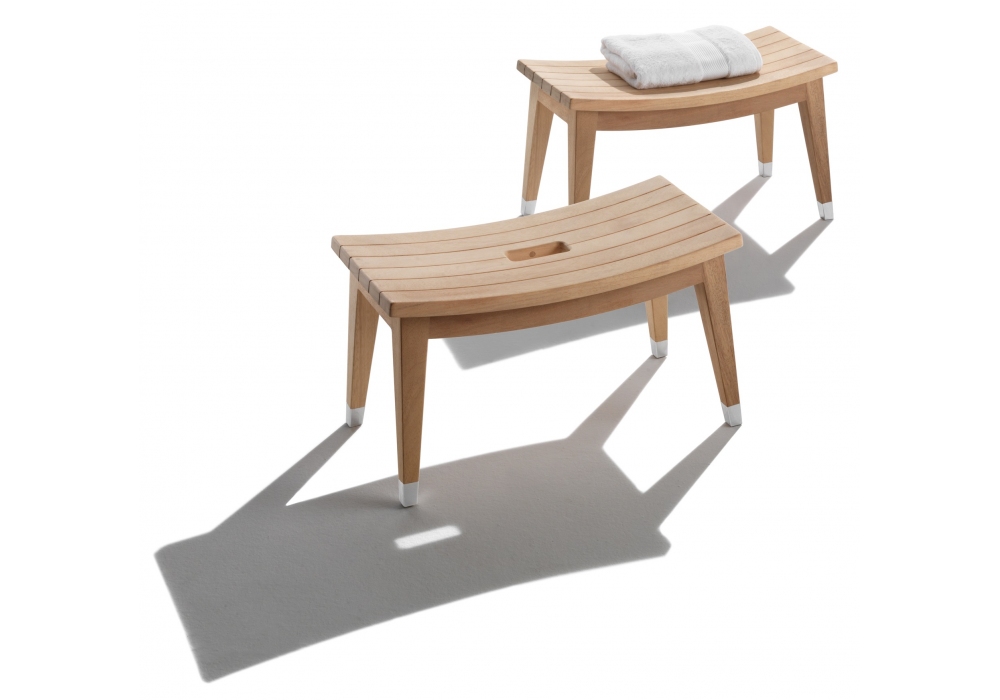 Lotus diseñado por Flexform es un taburete de la colección Outdoor. Estructura en madera maciza de iroko en acabado naturale, teñido gris, lacado blanco. La parte terminal de las patas está formada por puntas de metal y almohadillas de goma en nylon.