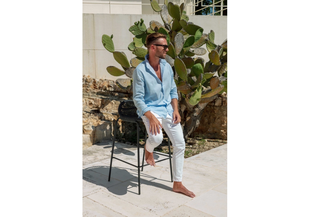Panama diseñado por Ludovica y Roberto Palomba para Talenti es un taburete con estructura de aluminio tejido con cuerda náutica sintética disponible en varios colores, cojín 35x40 en varios acabados.