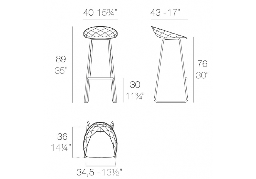 Vases diseñado por JM Ferrero - estudi (h) ac para Vondom es un taburete fabricado en polietileno moldeado por inyección y reforzado con fibra de vidrio y patas en acero inoxidable pintado al fuego con el asiento. Disponible en diferentes acabados.