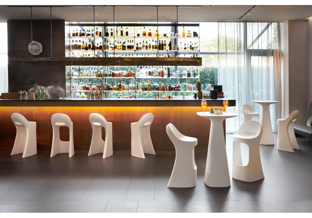 Amélie Sit Up diseñada por Italo Pertichini para Slide es un taburete alto con respaldo cónico que caracteriza toda la colección Amélie, es ideal en combinación con la mesa alta Amélie Up. Disponible en diferentes acabados