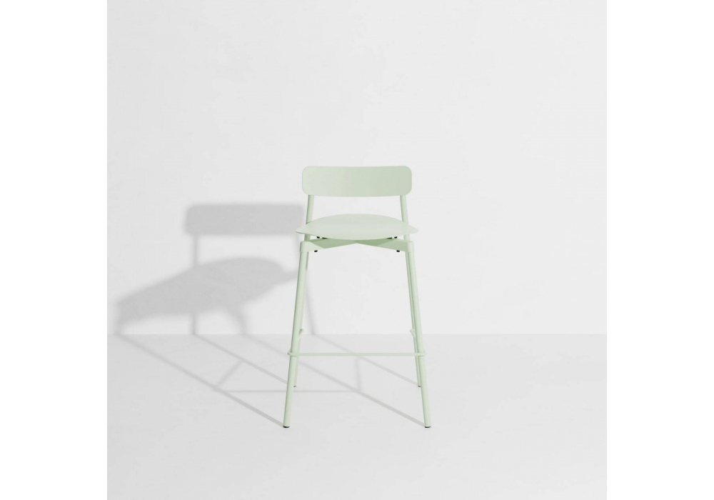 Fromme diseñado por Tom Chung para Petite Friture es un taburete de bar para exterior realizado en aluminio con recubrimiento en polvo granulado mate resistente al agua y a los rayos UV. Disponible en diferentes acabados y dimensiones.