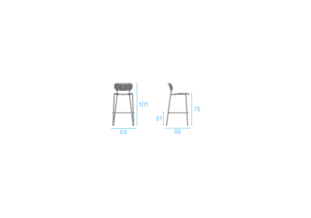 Apero diseñado por Martin Drechsel para Emu es un taburete de metal, Su apariencia minimalista y gráfica le permite adaptarse discretamente a cualquier tipo de ambiente y estilo. Disponible en diferentes acabados.