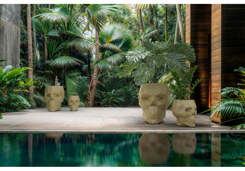 Skull diseñado por Studio Vondom es un taburete realizado en resina de polietileno mediante moldeo rotacional. 100% reciclable. Artículo apto para uso interno y externo. Disponible en diferentes acabados.