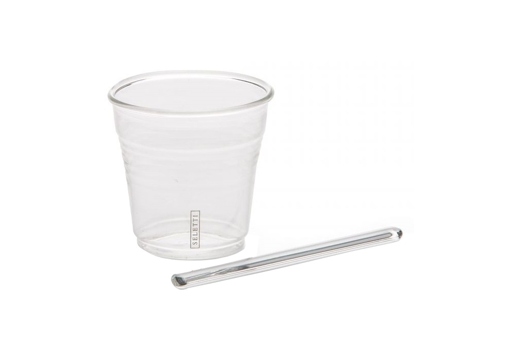 Bicchierino Da Caffè diseñado por Selab + Alessandro Zambelli para Seletti es un juego en cristal compuesto por 6 tazas + agitadores.