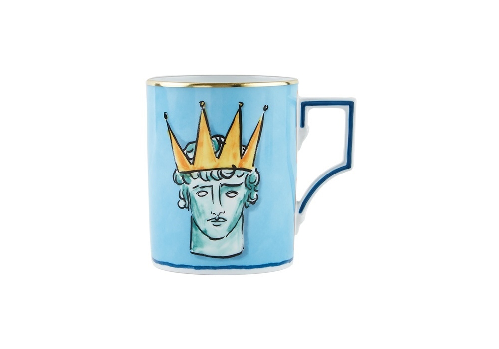 Tazza Il Viaggio di Nettuno Sea Blue diseñada por Luke Edward Hall para Ginori 1735 es una taza decorada.