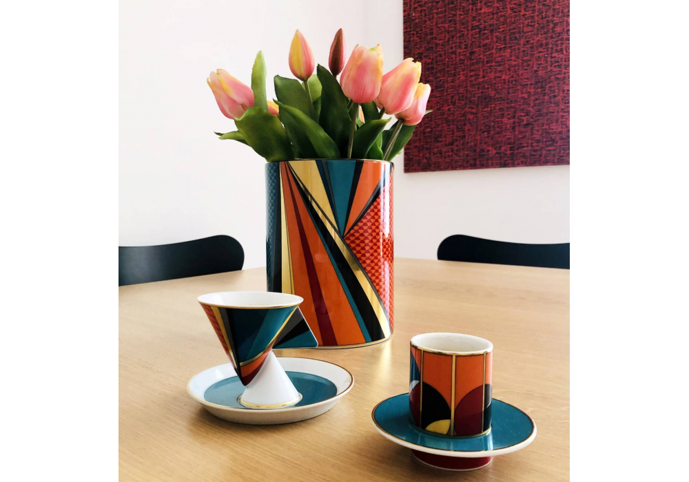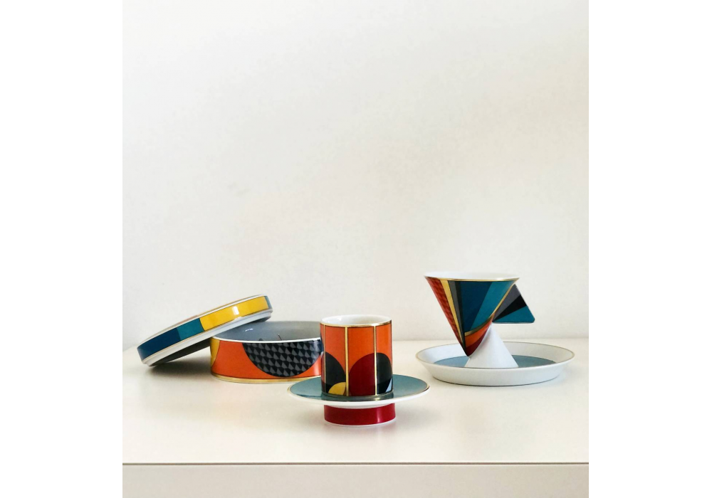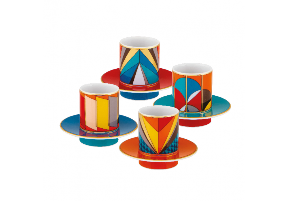 Futurismo diseñado por Vista Alegre es un conjunto de 4 tazas y platos de café fabricados en porcelana. Los elementos están pintados a mano enriquecidos con detalles dorados. La colección Futurismo es una reinterpretación contemporánea del movimiento pionero de todos los movimientos modernos, celebrando el progreso y marcando un período de reinvención de los lenguajes artísticos.