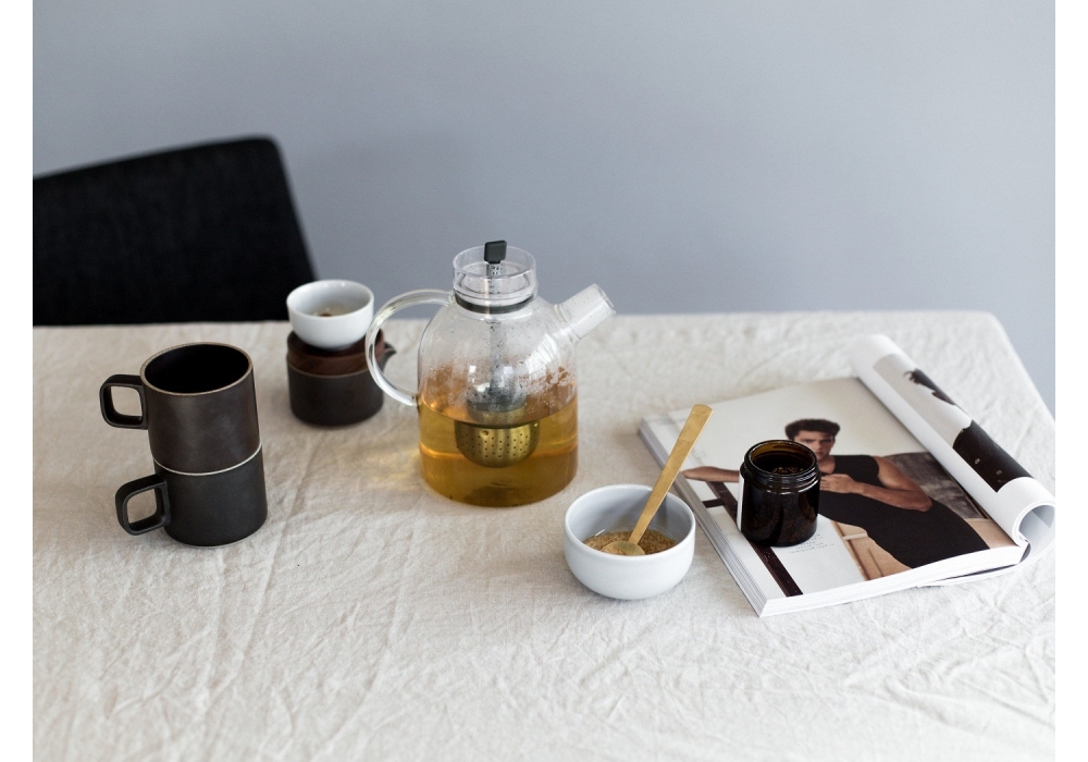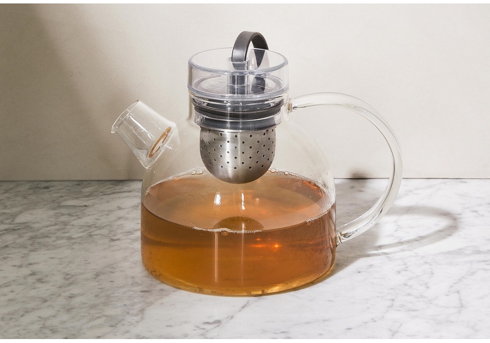 Kettle Teapot diseñada por Norm Architects para Audo Copenhagen es una tetera realizada en vidrio, acero inoxidable y cordón y tapón de silicona.