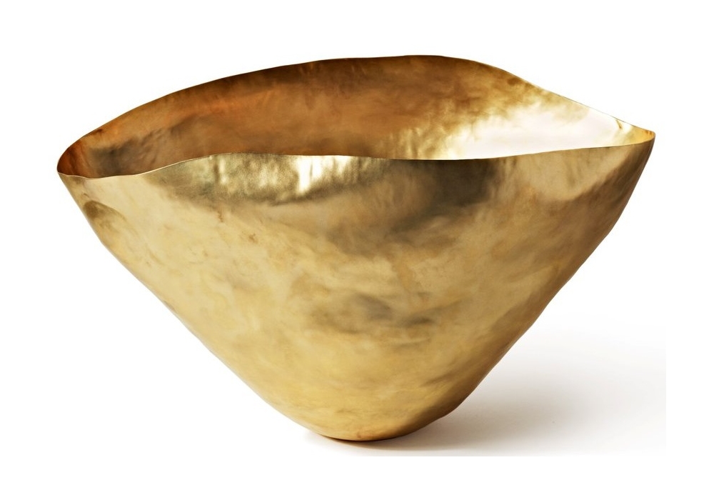 Bash Vessel diseñado por Tom Dixon es un jarrón artesanal en latón bañado en oro con acabado mate. Disponible en diferentes tamaños. Cada pieza es única en su forma.