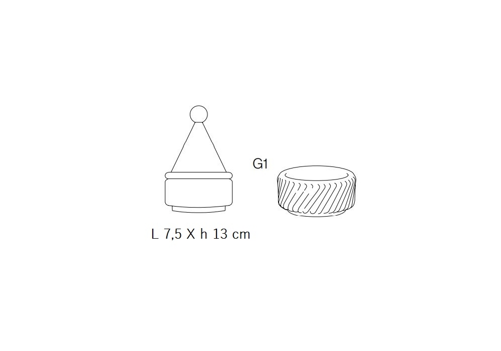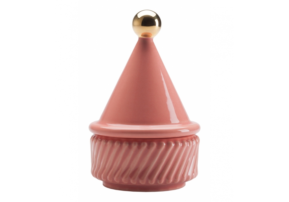Koni diseñado por Matteo Cibic para Bosa es un cuenco de cerámica con sombrero en el mismo acabado, con detalle de metal precioso.