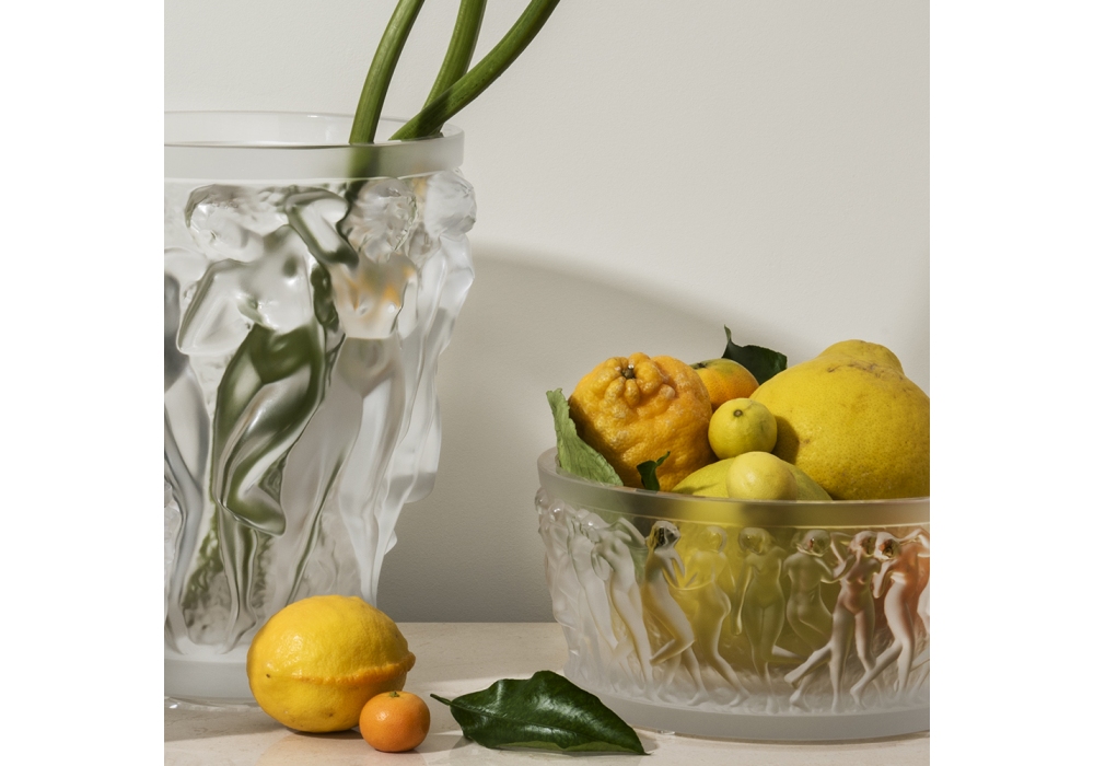 Bacchantes diseñado por René Lalique para Lalique es un cuenco hecho a mano en cristal transparente.