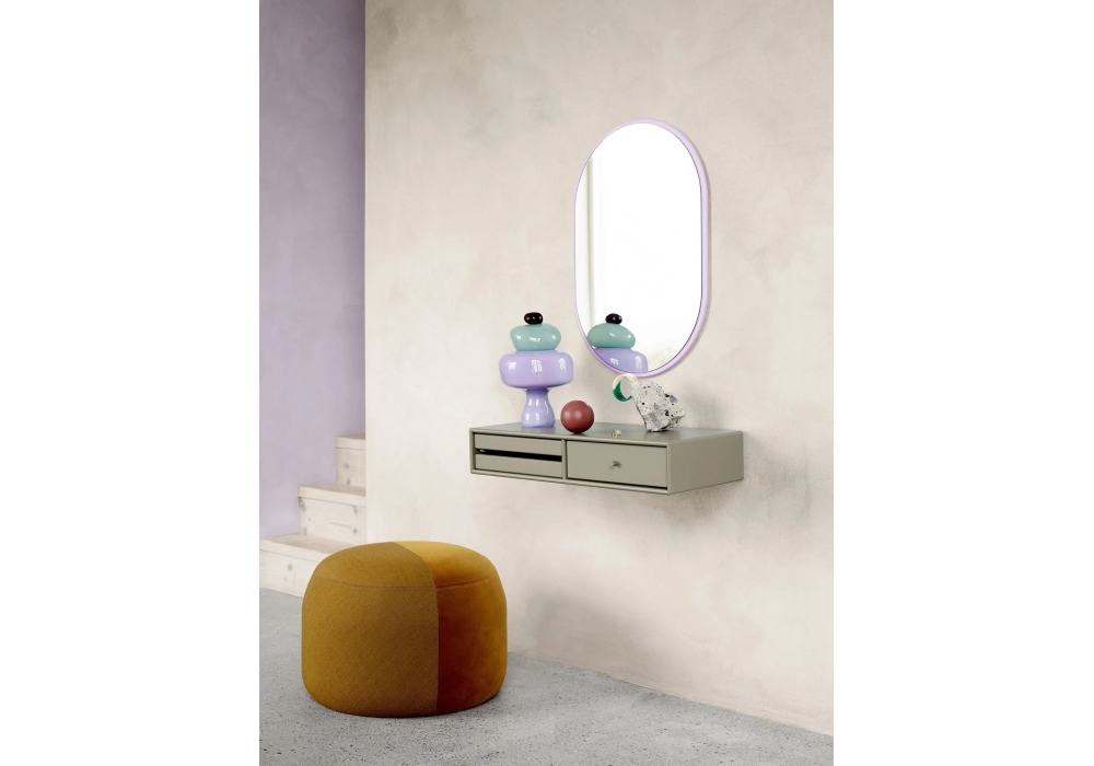 Makeup diseñado por Peter J. Lassen para Montana es un tocador de pared, que viene con un pequeño cajón y dos bandejas pequeñas. Disponible en diferentes colores lacados. Combina el tocador con un espejo del color a juego o complementario.