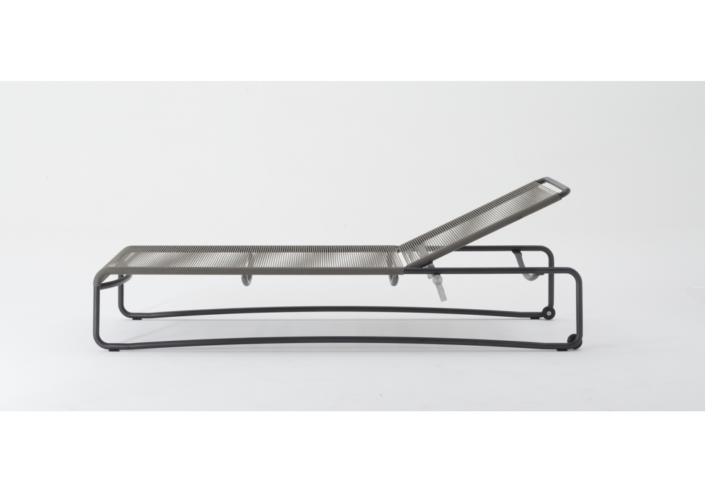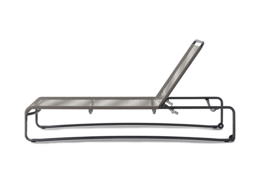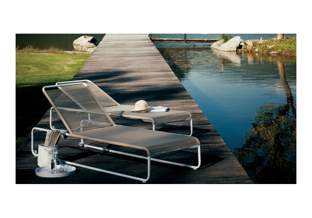 Harp 304 is an outdoor sunlounger deisgned by Rodolfo Dordoni for Roda. The classic string chair finds a new outdoor dimension, where polyester trails its infinite filaments around a tubular stainless steel structure in one continuous outline. Harp is a celebration of a craft manufacturing: a never-ending weave of cords that twine the stainless steel frame drawing lines that look continuous to the human eye. The structure is made in stainless steel welded by hand, and the cords are in a double polyester twisted thread with a cotton finishing. Reclining back: 3 positions.