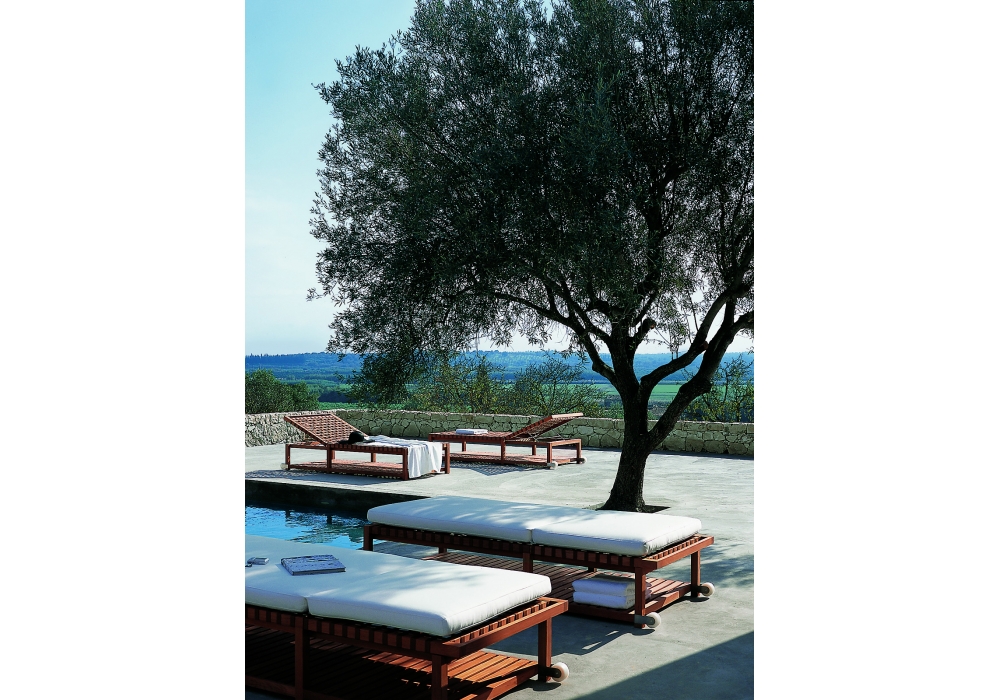 Network is an outdoor sunlounger deisgned by Rodolfo Dordoni for Roda. Sunlounger with wheels and teak bar for towels, in the teak structure and belts in different colours. Network is Roda’s archetypal collection, the one which marked the firm’s real turning point in terms of design. A product line whose highly distinctive feature is the marked presence of solid teak, a modular system for living and relax situations: Network, that is. With brilliant providence, Rodolfo Dordoni turns the skeleton of the backrest into a perfect shelf to hold the accessories of rest & relaxation. The structure offers both shape and ornament: clean lines and elegant simplicity work horizontally, in a rhythmical game of full and empty spaces.
