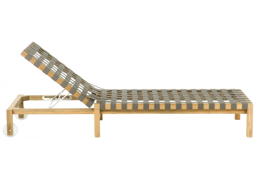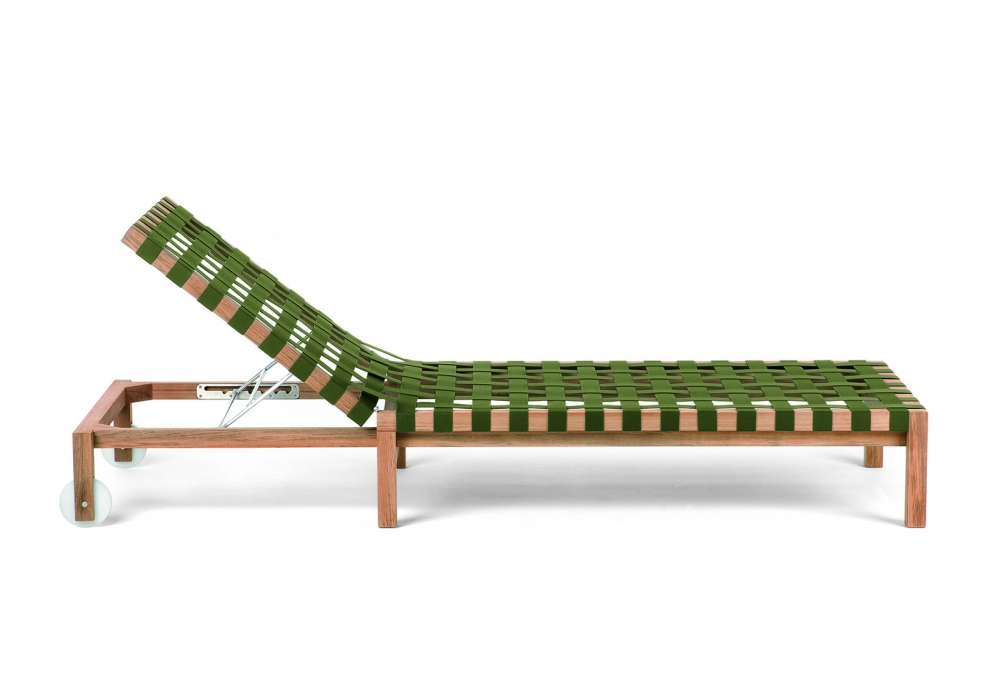 Mistral is an outdoor sunlounger deisgned by Rodolfo Dordoni for Roda. Mistral collection could be described as an offshoot from Network collection, since it has married the selfsame design inspiration but here the interpretation is somewhat lighter, having focused on more limited dimensions (in the absence of an element for holding objects), and is also ideal for metropolitan spaces, balcony and terrace. The structure in solid teak is available with tobacco, grey or olive belts.
