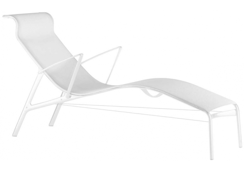 439 Longframe Colors diseñada por Alberto Meda para Alias es una Chaise Longue con apoyabrazos en estructura de aluminio extruido, asiento y respaldo en red ignífuga disponible en diferentes acabados. Alambre de refuerzo de Kevlar negro.