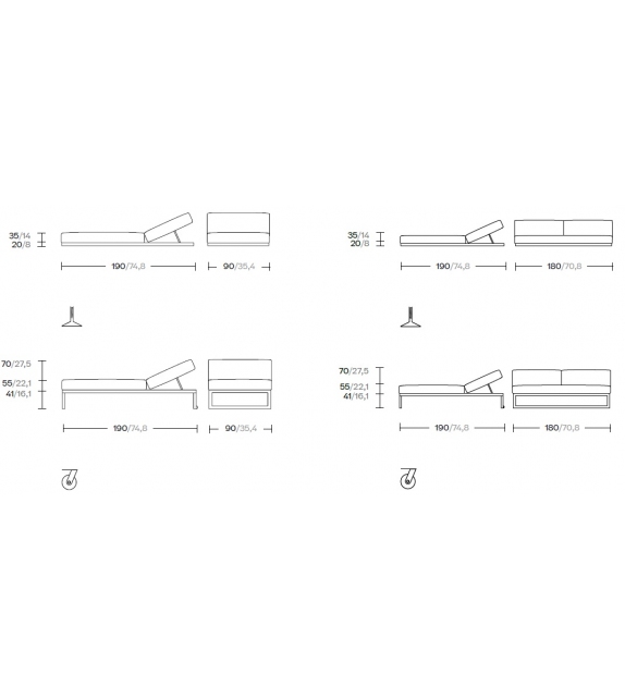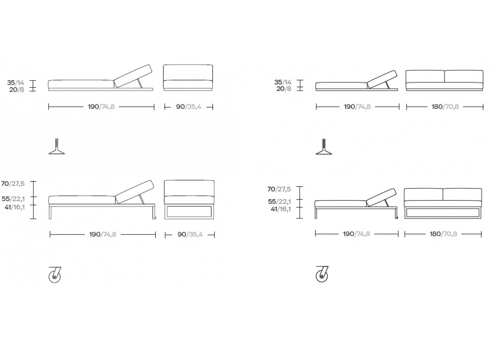 | Dimensiones | 90 x 190 x H 35/70 cm; 180 x 190 x H 35/70 cm. |