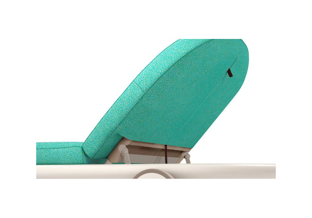 Trampoline diseñada por Patricia Urquiola para Cassina es una tumbona de exterior realizada con ruedas y estructura de respaldo ajustable en acero inoxidable pintado. Tapicería de tela disponible en diferentes acabados.