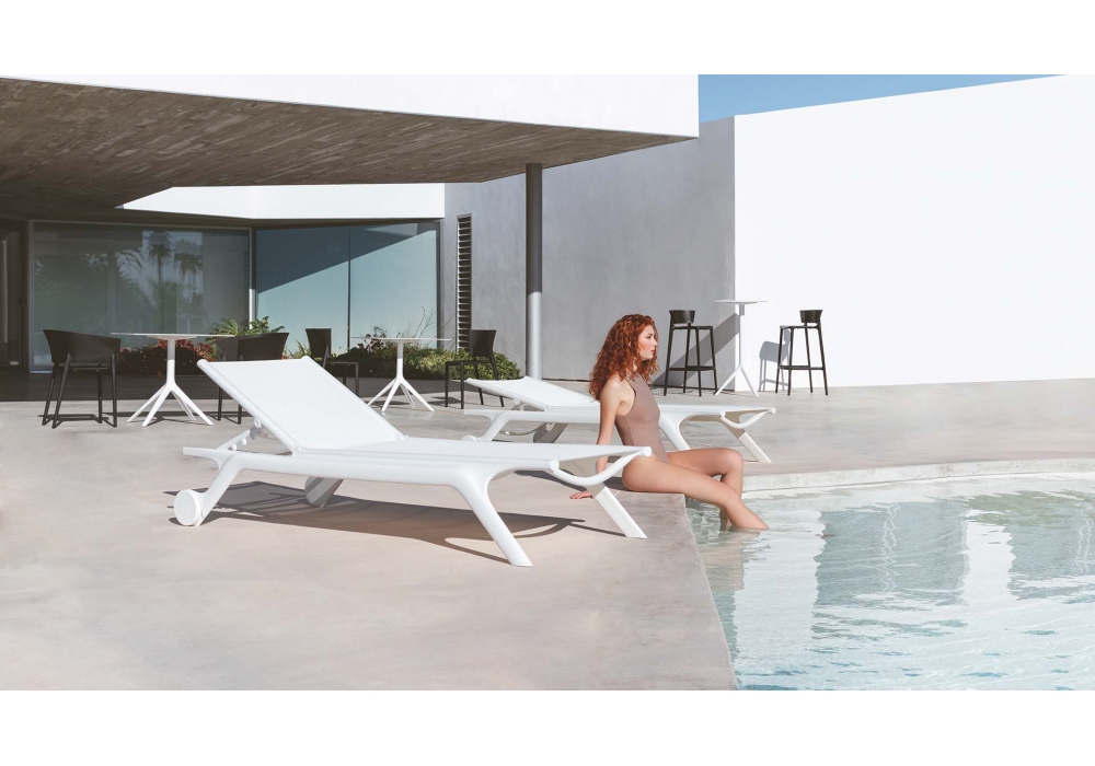 Africa diseñada por Eugeni Quitllet para Vondom es una tumbona de polipropileno con acabado mate o lacado. Disponible en diferentes acabados.