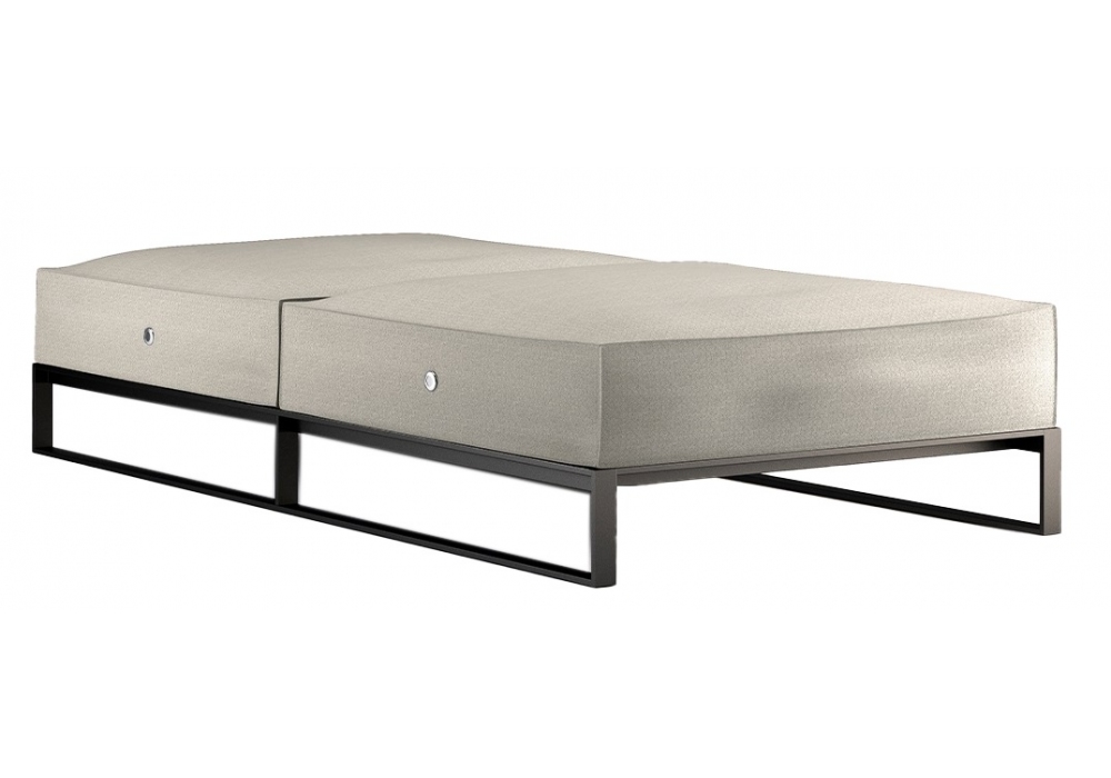 Garden Moore diseñado por Broberg & Ridderstråle para Röshults es un daybed con estructura en acero inoxidable antracita y tapizado en tejido resistente a la intemperie Sunbrella® disponible en diferentes variantes.