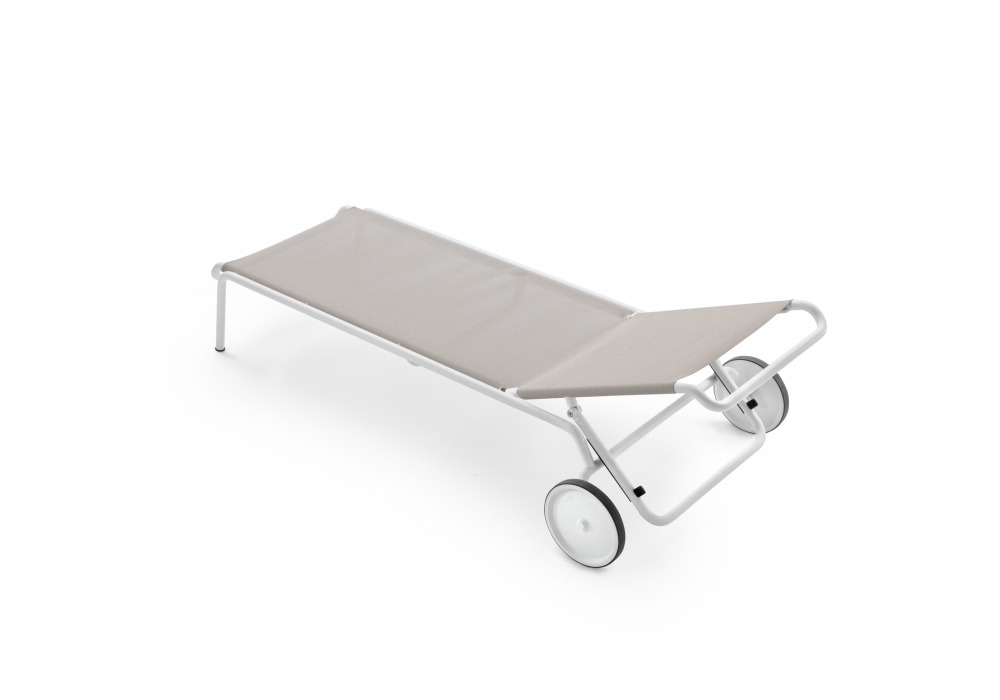 Calipso diseñada por Antonio Citterio para Flexform es una tumbona con estructura tubular de acero inoxidable pintado al horno en varios colores, red de tejido batyline o de cuerda de polipropileno o incluso de PVC. Disponible en diferentes acabados y dimensiones.