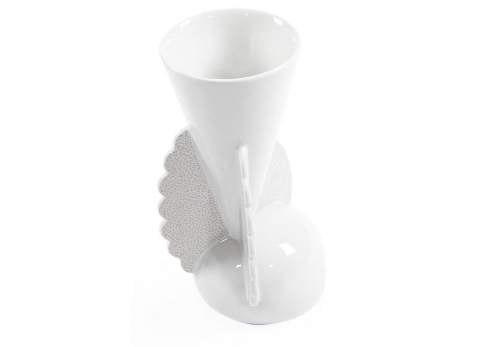 Ladoga diseñado por Matteo Thun para Memphis Milano es un vaso de cóctel de porcelana blanca con adornos.