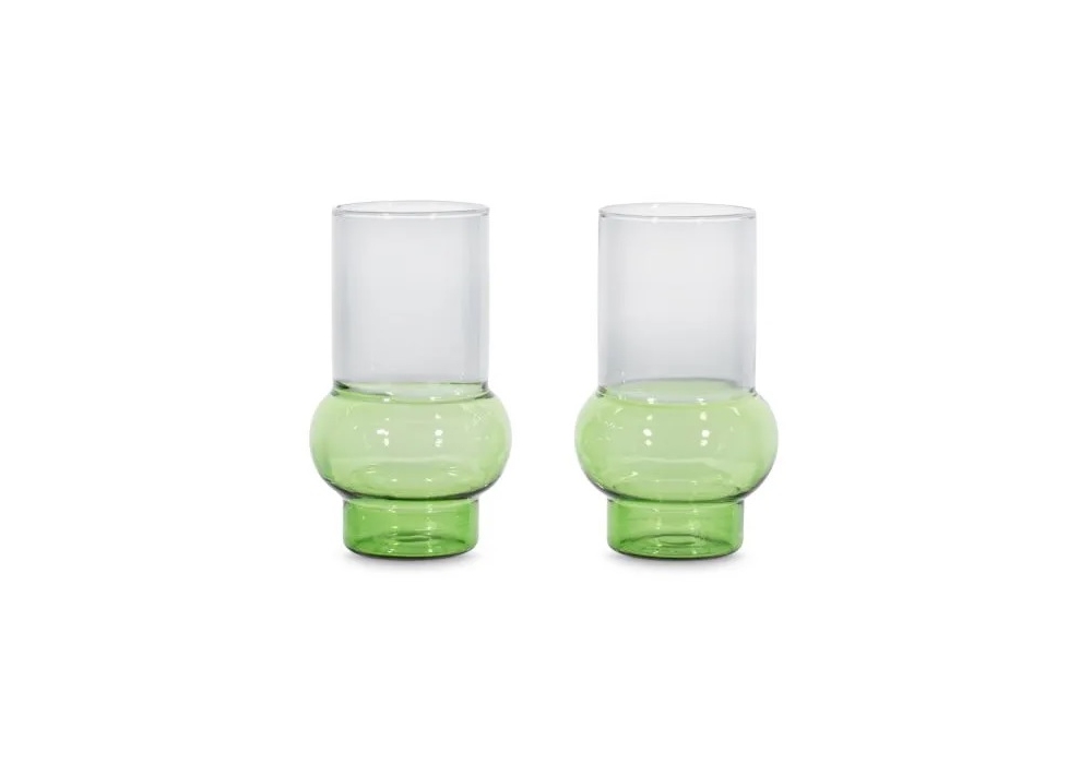 Bump Tall Green diseñado por Tom Dixon es un set de 2 vasos fabricados en borosilicato.