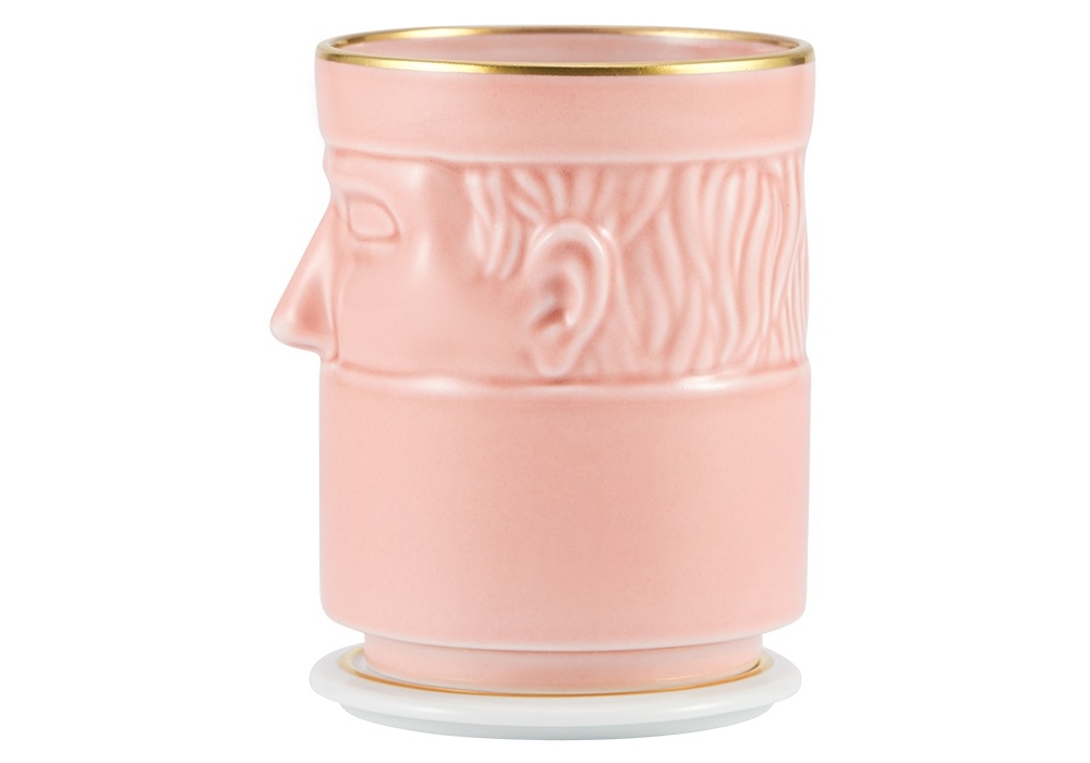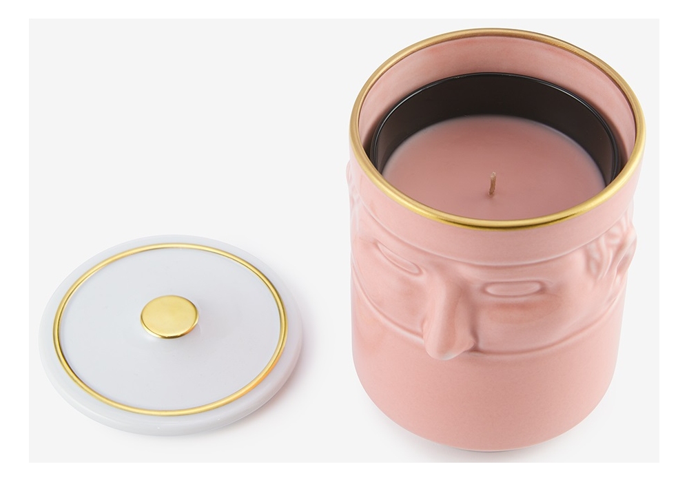 LCDC Il Seguace Flamingo diseñado por Luca Nichetto para Ginori 1735 es un portavelas recargable de porcelana con un juego de velas perfumadas Orange Renaissance de 190 g con tapa.