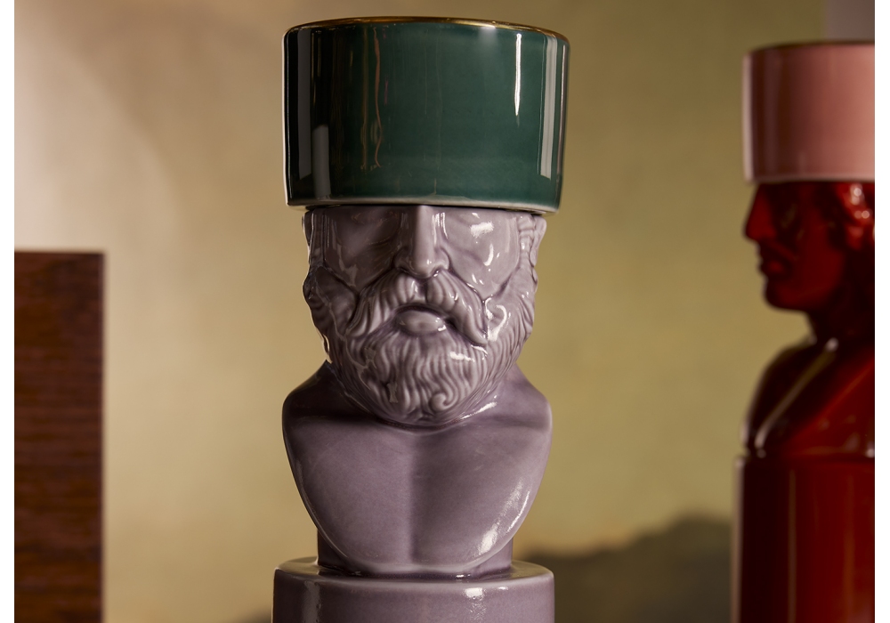 LCDC Il Letterato Lavander diseñado por Luca Nichetto para Ginori 1735 es un portavelas recargable de porcelana con 6 velas perfumadas Purple Hill de 40 g.