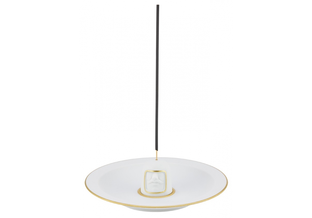 LCDC Il Frate Pure White diseñado por Luca Nichetto para Ginori 1735 es un quemador de incienso recargable de porcelana con un juego de 80 varitas de incienso con fragancia Black Stone.