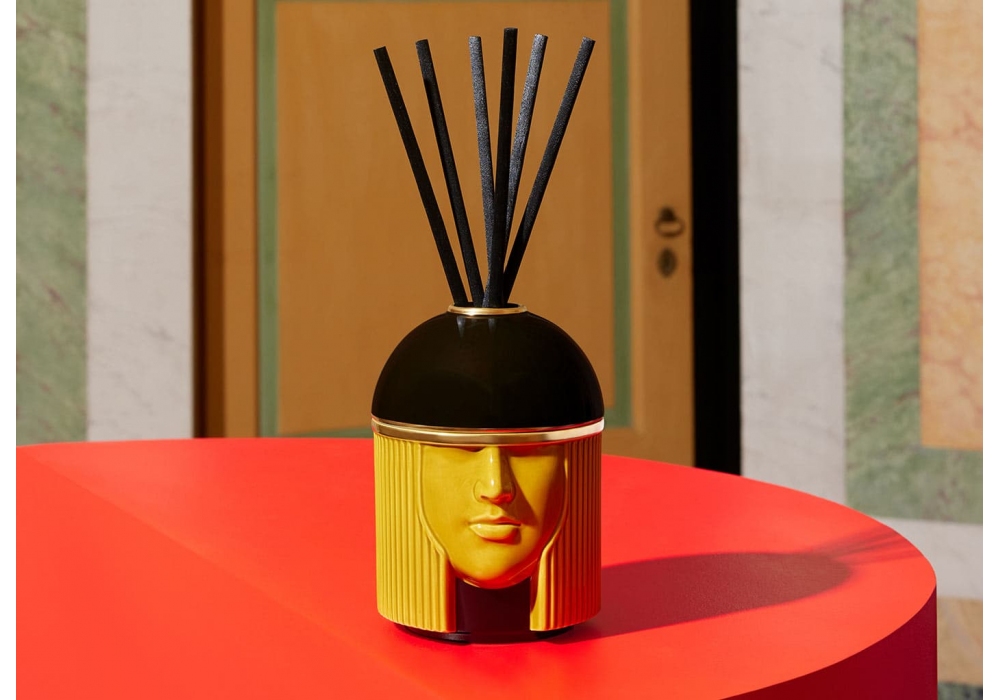 LCDC L'Amazzone Saffron diseñado por Luca Nichetto para Ginori 1735 es un difusor de fragancia (recargable) en porcelana pura, completo con kit de fragancias Amber Lagoon (frasco de vidrio de 400ml con 5 varillas, duración estimada entre 90 y 120 días).