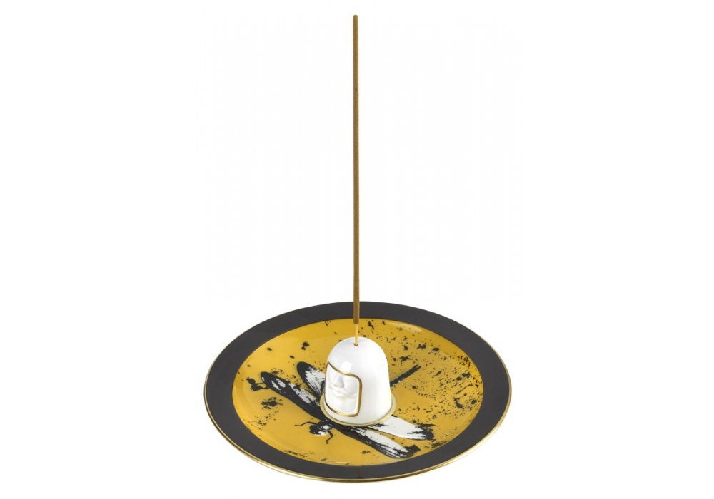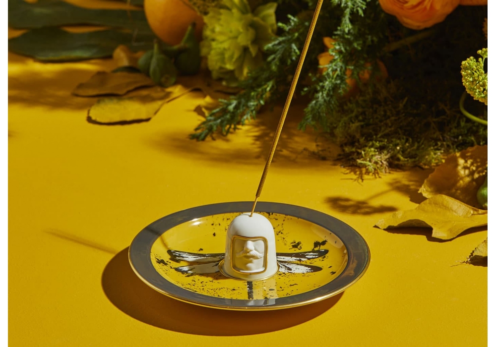 LCDC Il Frate Saffron diseñado por Luca Nichetto para Ginori 1735 es un quemador de incienso recargable de porcelana con un juego de 80 varitas de incienso con fragancia Amber Lagoon.