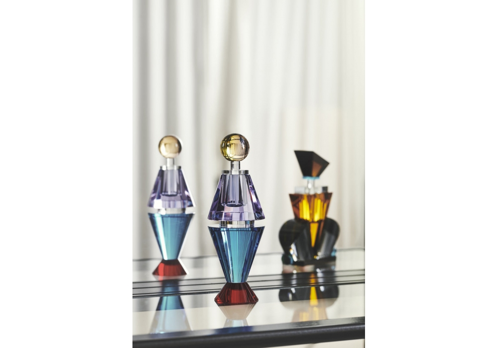 Lauderdale producido y firmado por Reflections Copenhagen es un frasco de perfume de cristal estructurado por varios elementos geométricos tallados y acabados a mano en los colores rosa, rojo, amarillo, transparente, azul y tvviola. Lauderdale no contiene líquidos.