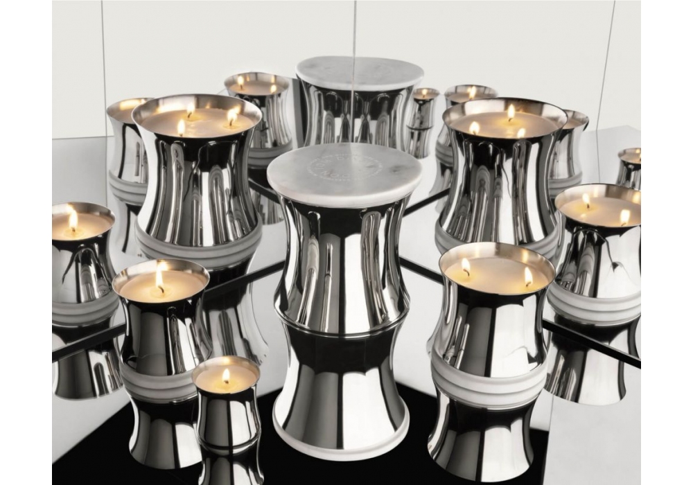Eclectic Royalty diseñada por Tom Dixon es una vela perfumada encerrada en un recipiente de níquel torneado a mano. Disponible en diferentes tamaños.