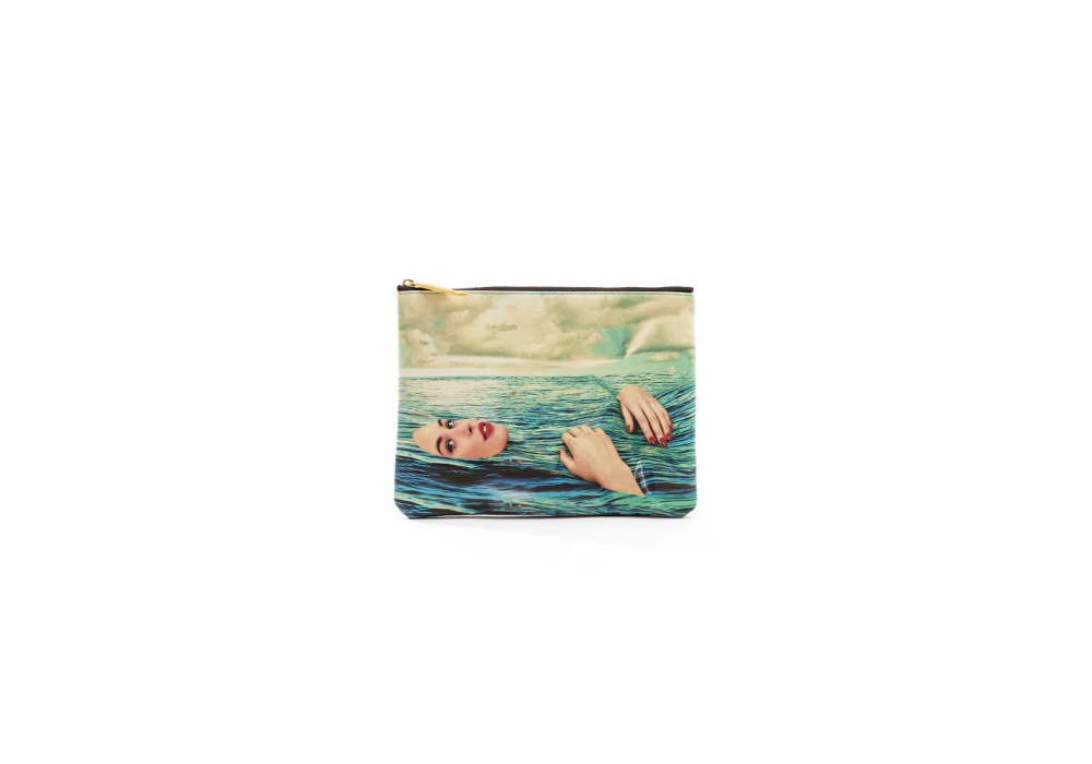 Seagirl conçue par Toiletpaper Magazine pour Seletti est une trousse à cosmétiques avec fermeture éclair en polypropylène avec imprimé coloré.