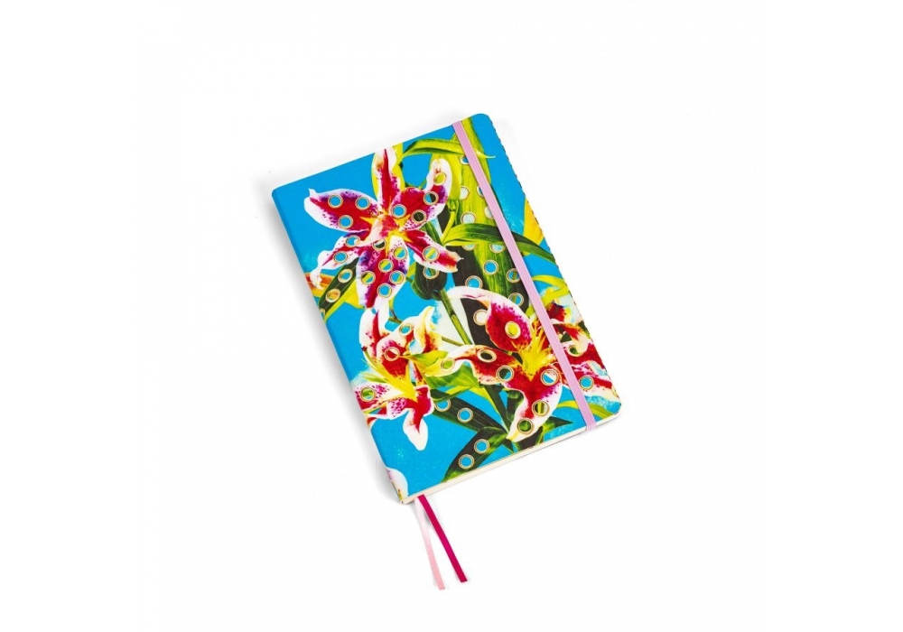 Flowers with Holes conçu par Toiletpaper Magazine pour Seletti est un carnet avec une couverture en papier recouvert de PU avec des graphiques colorés. Les feuilles intérieures sont en papier de couleur ivoire.