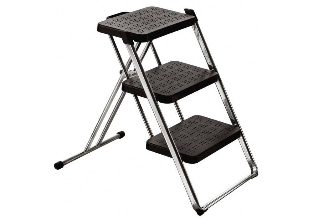 Nuovastep conçue par Andries & Hiroko Van Onck pour Magis est une échelle pliante avec structure en tube d'acier chromé ou peint en résine époxy. Disponible en différentes finitions.