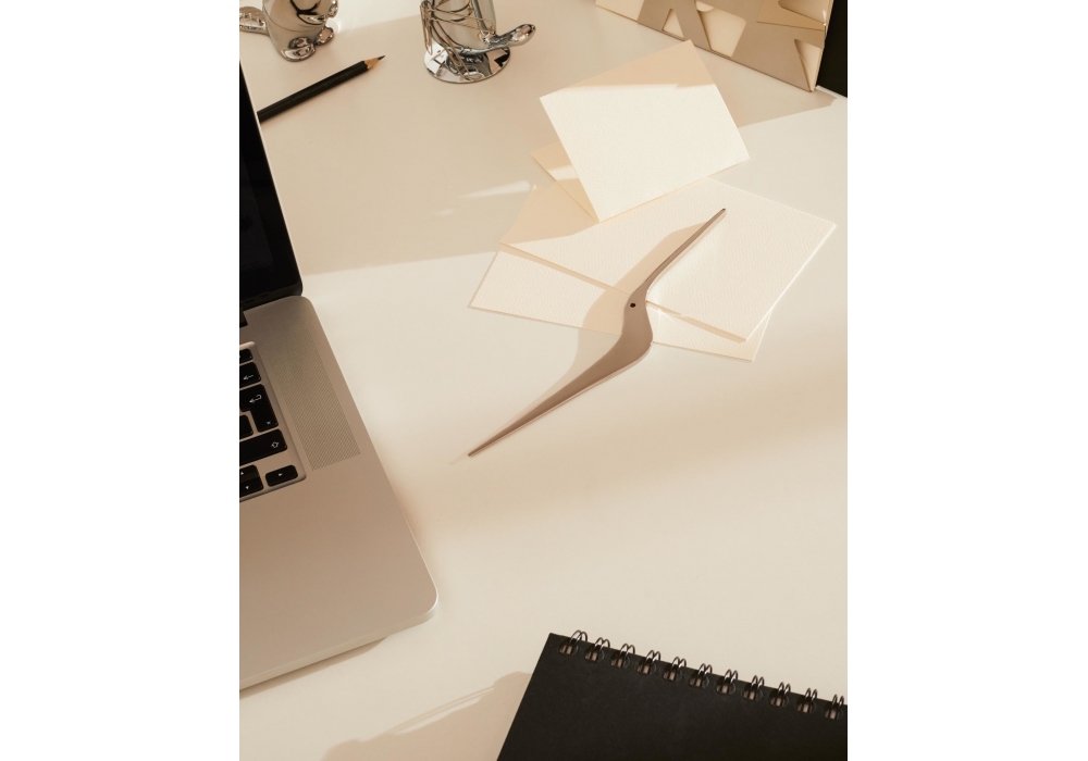 Uselen conçu par Giulio Iacchetti pour Alessi est un coupe-papier en acier inoxydable 18/10.