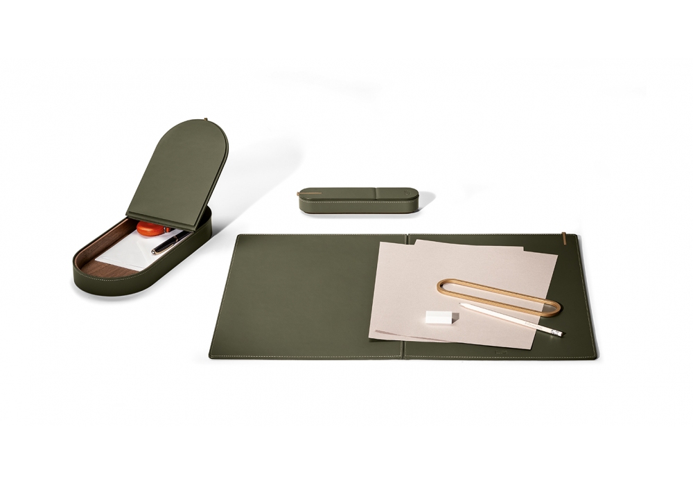 Gli Oggetti - Zhuang Desk conçu par Neri & Hu pour Poltrona Frau sont des accessoires de bureau caractérisés par un design minimaliste et ultra-moderne. La collection se compose d'un rangement, d'un porte-stylo avec règle et d'un sous-main.