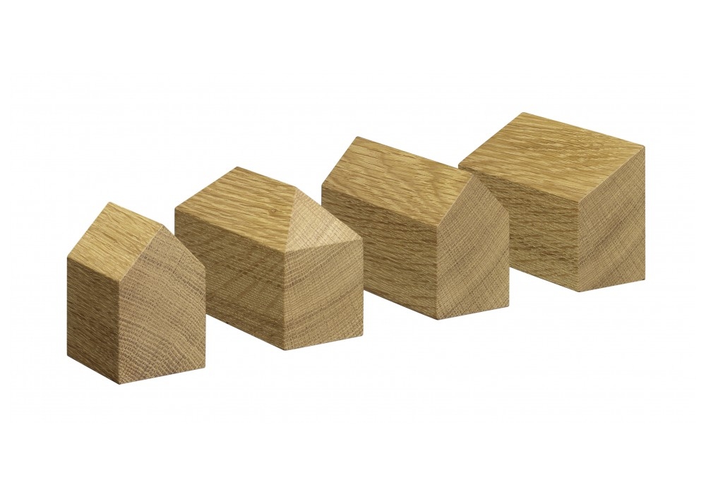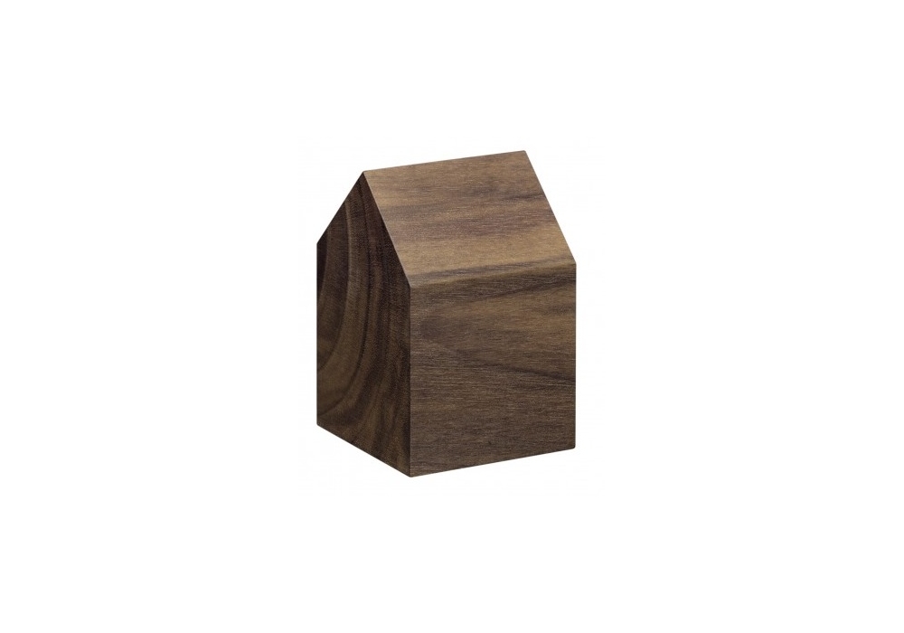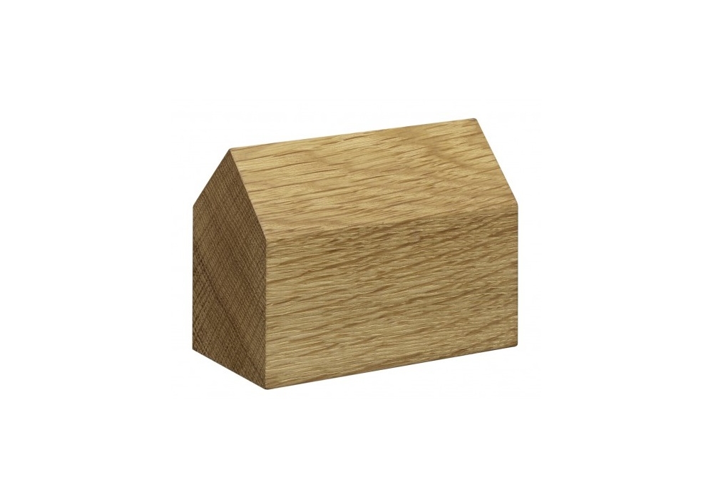 AC10 Haus conçu par Jan Philip Holler pour E15 est un presse papier en chêne européen massif, noyer ou laiton poli (petite version). Disponible en différentes dimensions.