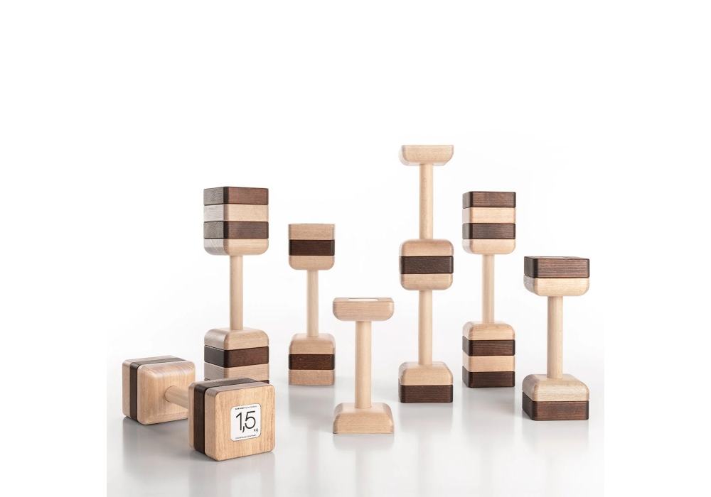 Attico est un ensemble de poids conçu par Basaglia + Rota Nodari pour Fas Pendenza. Ils sont structurés en bois de hêtre en alternant clair et foncé. Ils sont fabriqués selon la certification FSC et sont disponibles en différents poids 0,5 kg, 1,0 kg, 1,5 kg, 1,5 kg et 2,0 kg. Attico est disponible en différents modèles.