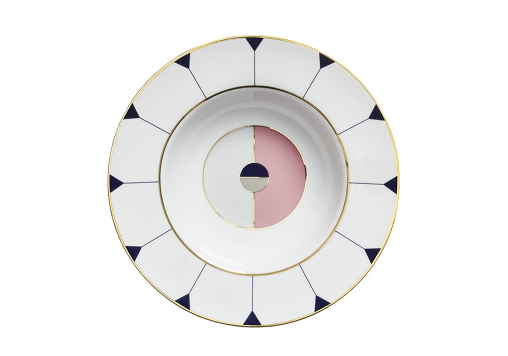Ortiga produite et signée par Reflections Copenhagen est une assiette à pâtes en porcelaine aux décorations diverses et extraverties d'inspiration graphique de l'Art Nouveau.