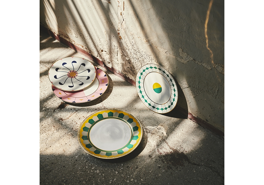 Medeira produite et signée par Reflections Copenhagen est une assiette plate en porcelaine aux décorations diverses et extraverties d'inspiration graphique de l'Art Nouveau.