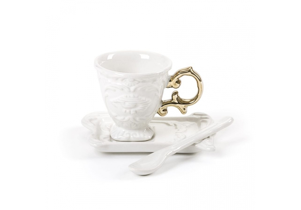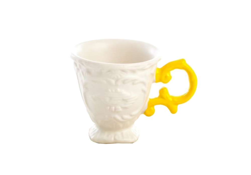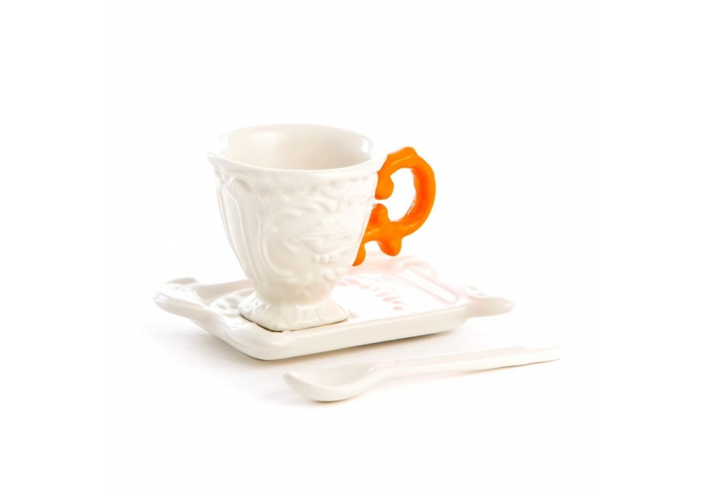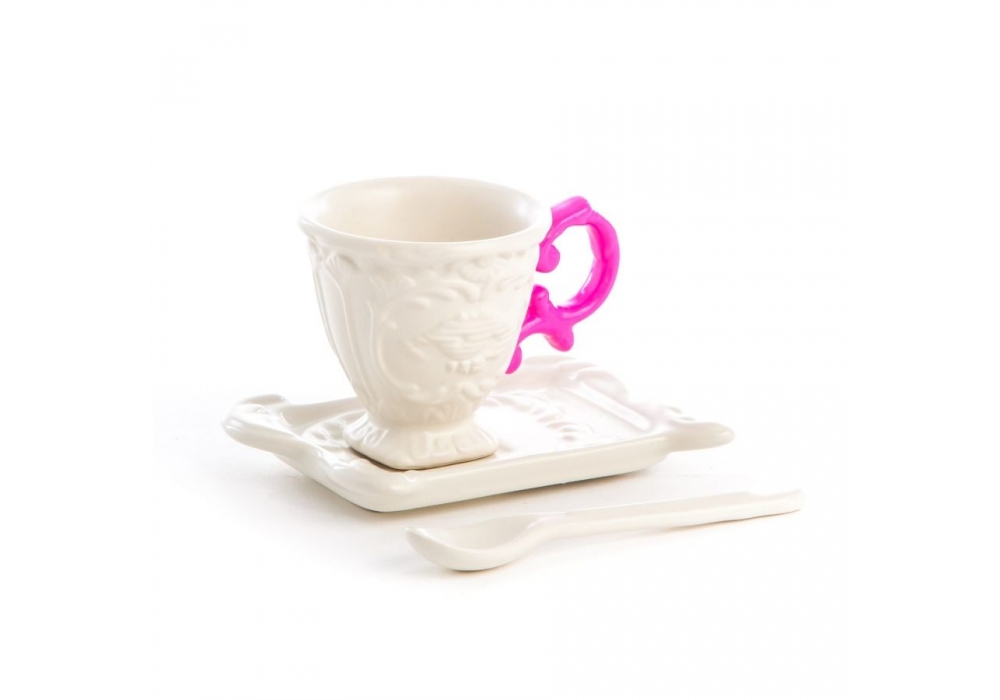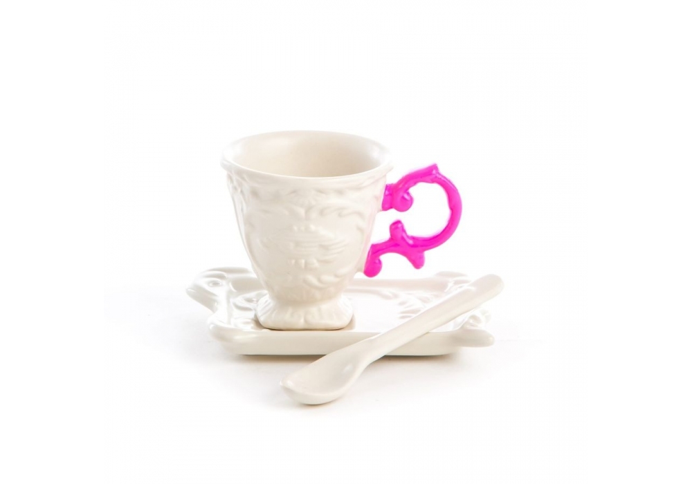 I Wares conçue par Selab pour Seletti est une tasse à café en porcelaine blanche avec anse colorée. La soucoupe porte-gobelet est de forme quadrangulaire et est également en porcelaine blanche équipée d'une cuillère à café du même matériau. I Wares est disponible en différentes finitions.