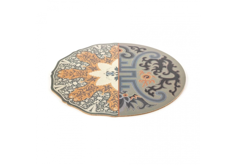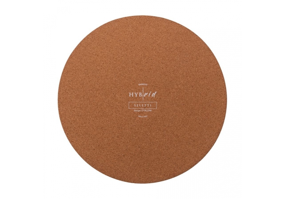 Hybrid conçu par Ctrlzak pour Seletti est un set de table circulaire en liège recouvert de PVC. L'hybride est disponible en différents modèles.