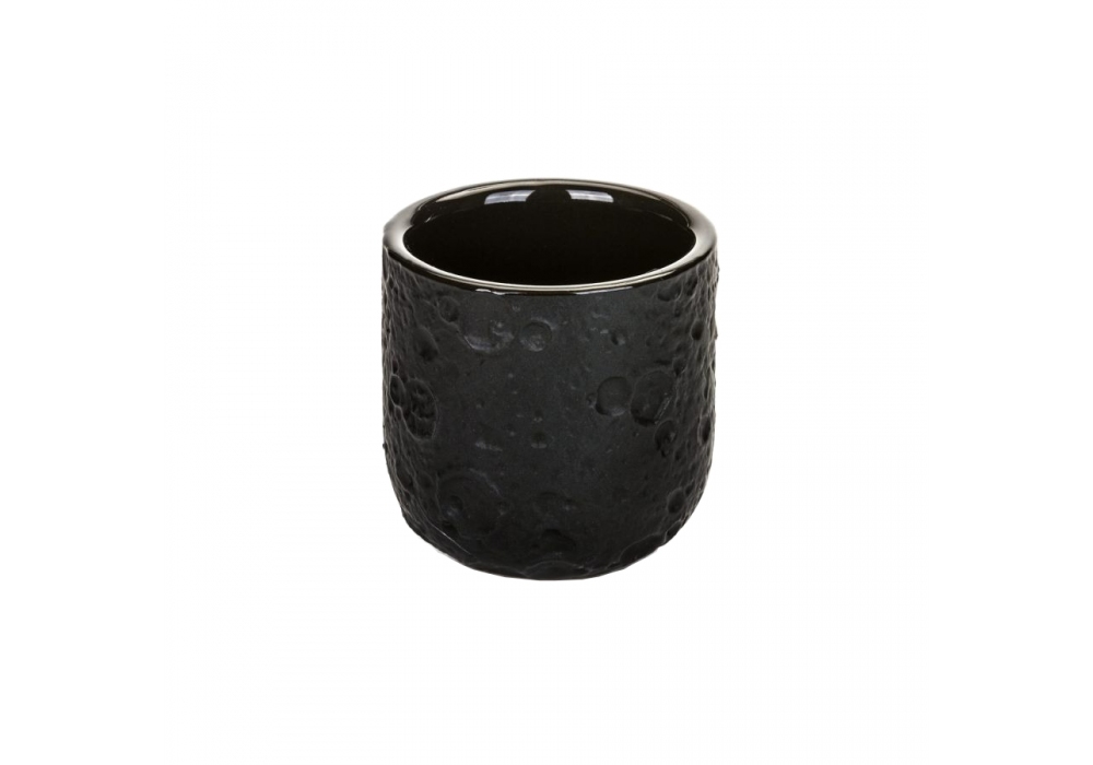Cosmic Diner Lunar conçue par Diesel Living avec Seletti pour Seletti est une tasse à café en grès noir avec une surface poreuse.