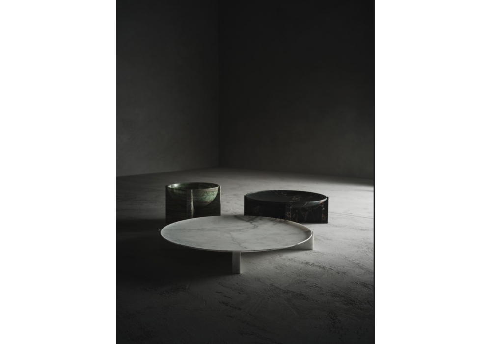 Imperial L conçue par Christophe Pillet pour Kreoo est un centre de table circulaire entièrement réalisé en marbre avec une base en croix. Imperial L est disponible en différentes finitions.