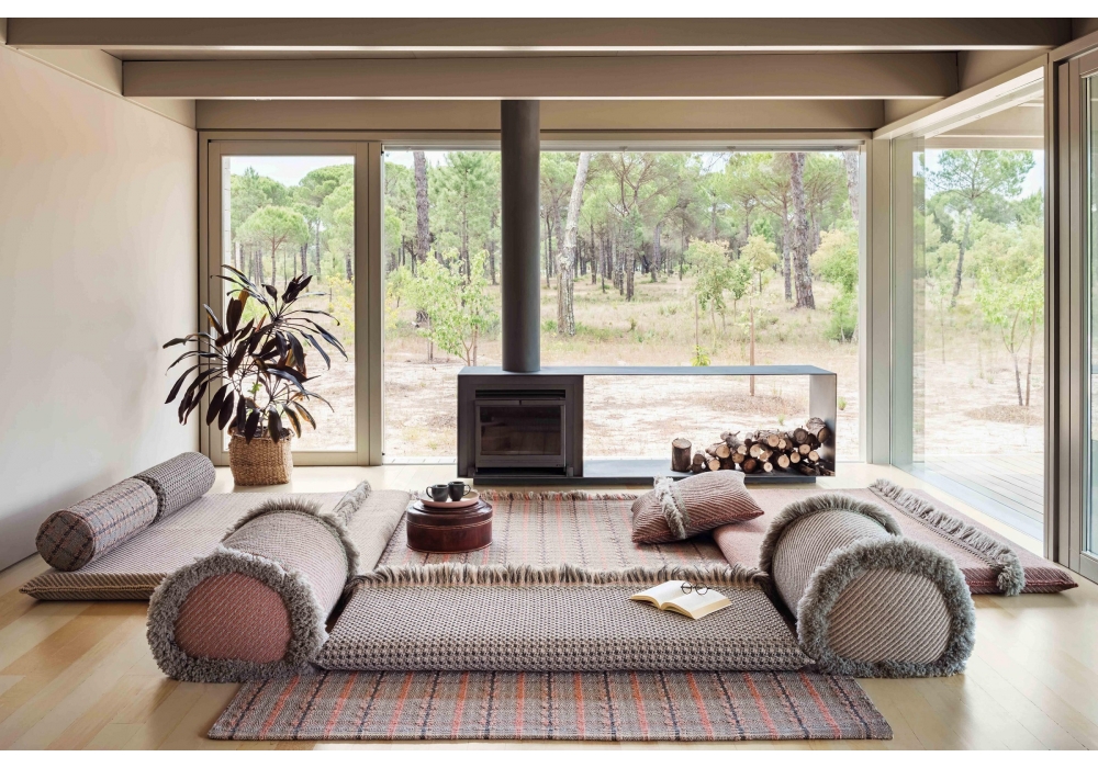 Garden Layers conçu par Patricia Urquiola pour Gan est un matelas rectangulaire avec revêtement en PET 100% recyclé. Disponible en différentes finitions.