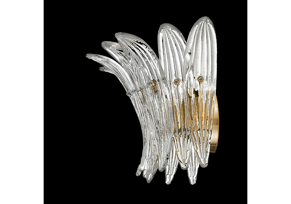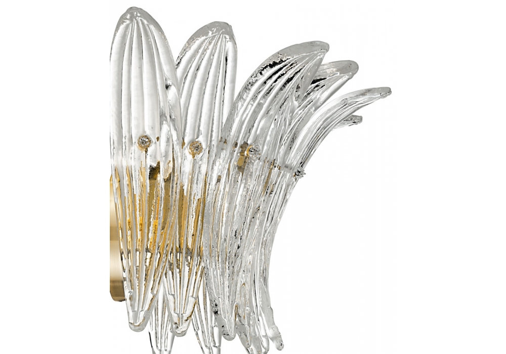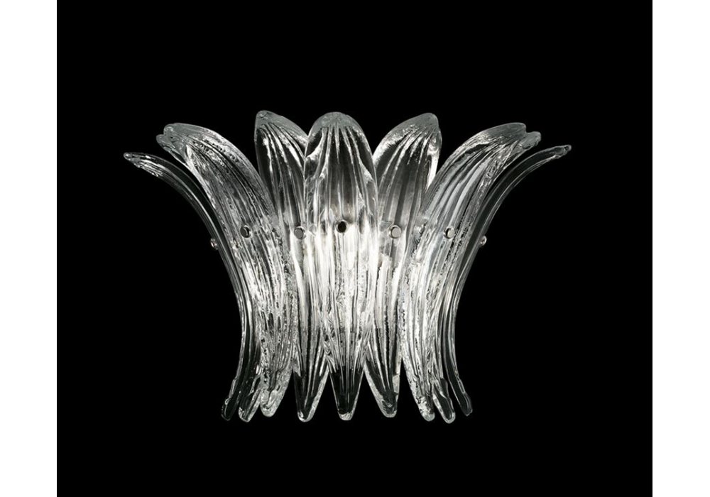 Palmette conçue et produite par Barovier & Toso est une applique avec une structure portante en métal et un diffuseur structuré par de multiples éléments en verre vénitien. La source lumineuse utilisée est de type LED dimmable ou halogène. Palmette est disponible en différentes finitions des parties métalliques.
